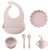 6PCS Silicone Baby Feeding Set with Lion Plate, Bib, Cup, Spoon & Fork