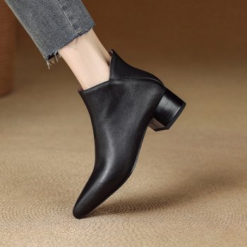 Winter Leather Ankle Boots for Women – Square Toe Chunky Heel Lace-Up Style
