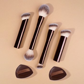 6-Piece Makeup Brush Set with Aluminum Tubes & Triangle Air Cushion Puff