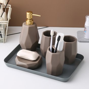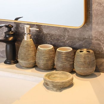 Retro Brushed Ceramic 5-Piece Bathroom Set