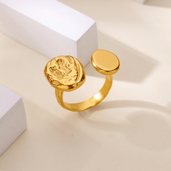 Gold Plated Stainless Steel Geometric Texture Ring for Women