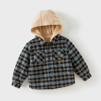 Boys’ Warm Hooded Plaid Winter Coat – Cozy Cotton Padded Jacket