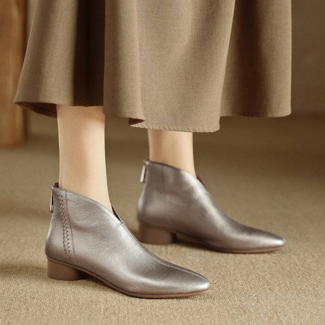Made from 100% genuine leather, both the upper and lining ensure durability, warmth, and breathability. The soft latex foam insole provides all-day cushioning, while the non-slip rubber outsole offers reliable traction on winter streets. Featuring a square mid-heel (approx. 1.2–2 in) and a sleek pointed toe, these ankle boots balance classic design with modern appeal. The convenient side zipper closure allows easy wear without compromising style.